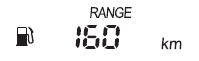 W tym trybie wyświetlana jest przybliżona odległość, jaką można przejechać na pozostałym w zbiorniku paliwie.