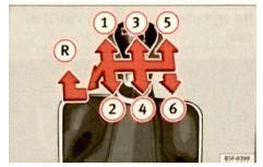 Rys. 53 Schemat zmiany biegów w 5- lub 6-biegowej ręcznej skrzyni biegów